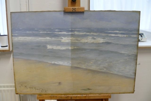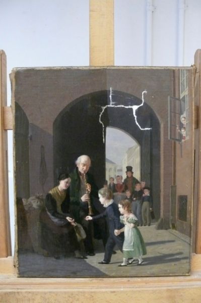 Derfor skal optørringen af vandskadede malerier foretages under kontrollerede forhold for at forhindre, at lærredet krymper, hvorved der kan opstå farvetab og op- og afskalninger.