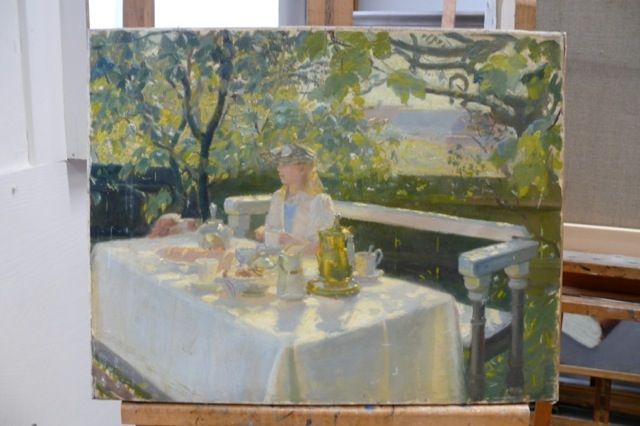 Konserveringsværkstedet vurderer skadernes omfang og tilbyder en konserveringsløsning, således at skaderne i maleriets lærred udbedres og skaderne i farvelaget re-etableres og retoucheres. Retoucheringen sikrer, at skaden ikke længere vil opfattes synlig for beskueren.